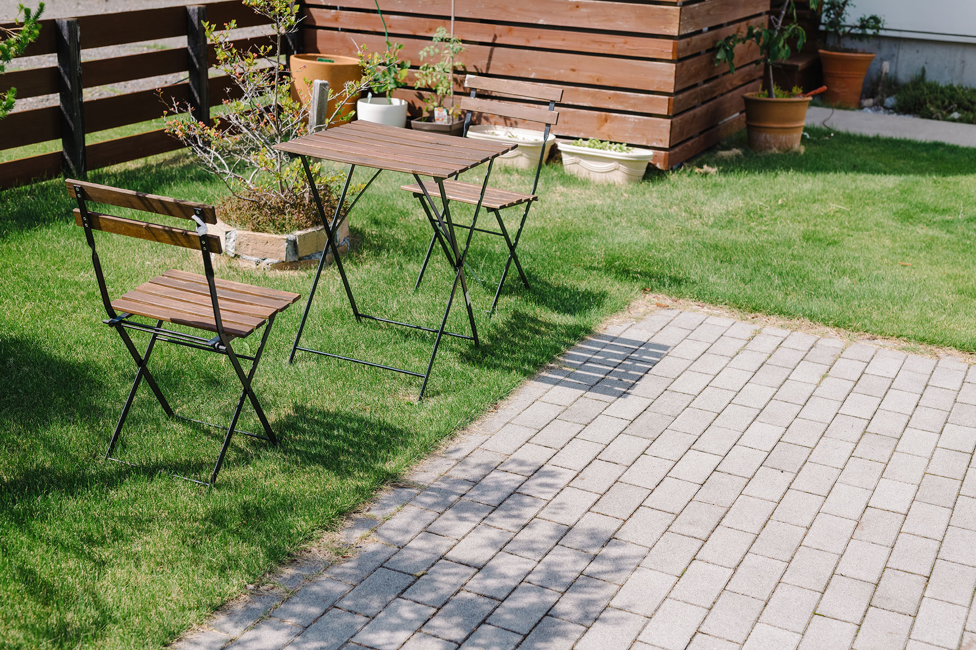 本来ならもう少し郊外や農村・山村地域で実現しやすいタイプの庭ですが、こうした立地や条件が整ったことで、街中でも開放的な庭がかたちになりました。