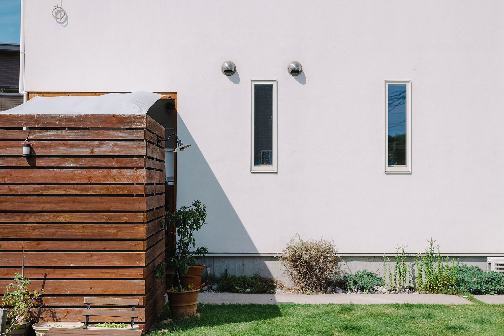 それから、庭となる敷地はもともと分譲地として空いていた土地を取得。そのため、将来建つであろう隣家のことを見据えてプライバシーを保護された建築であったということ。