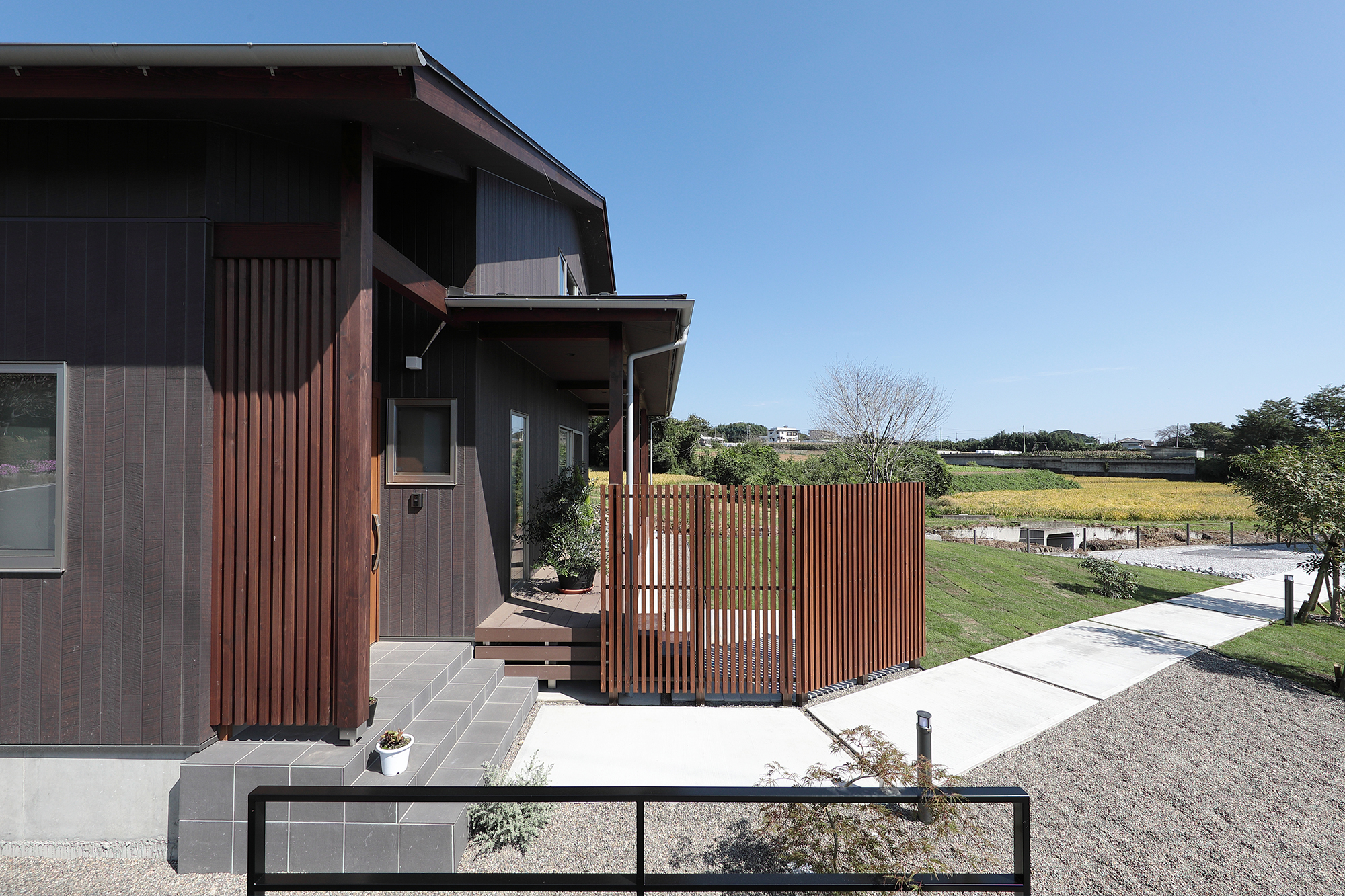 敷地の横に広がる田畑の風景も、庭の延長として取り込めるように計画。