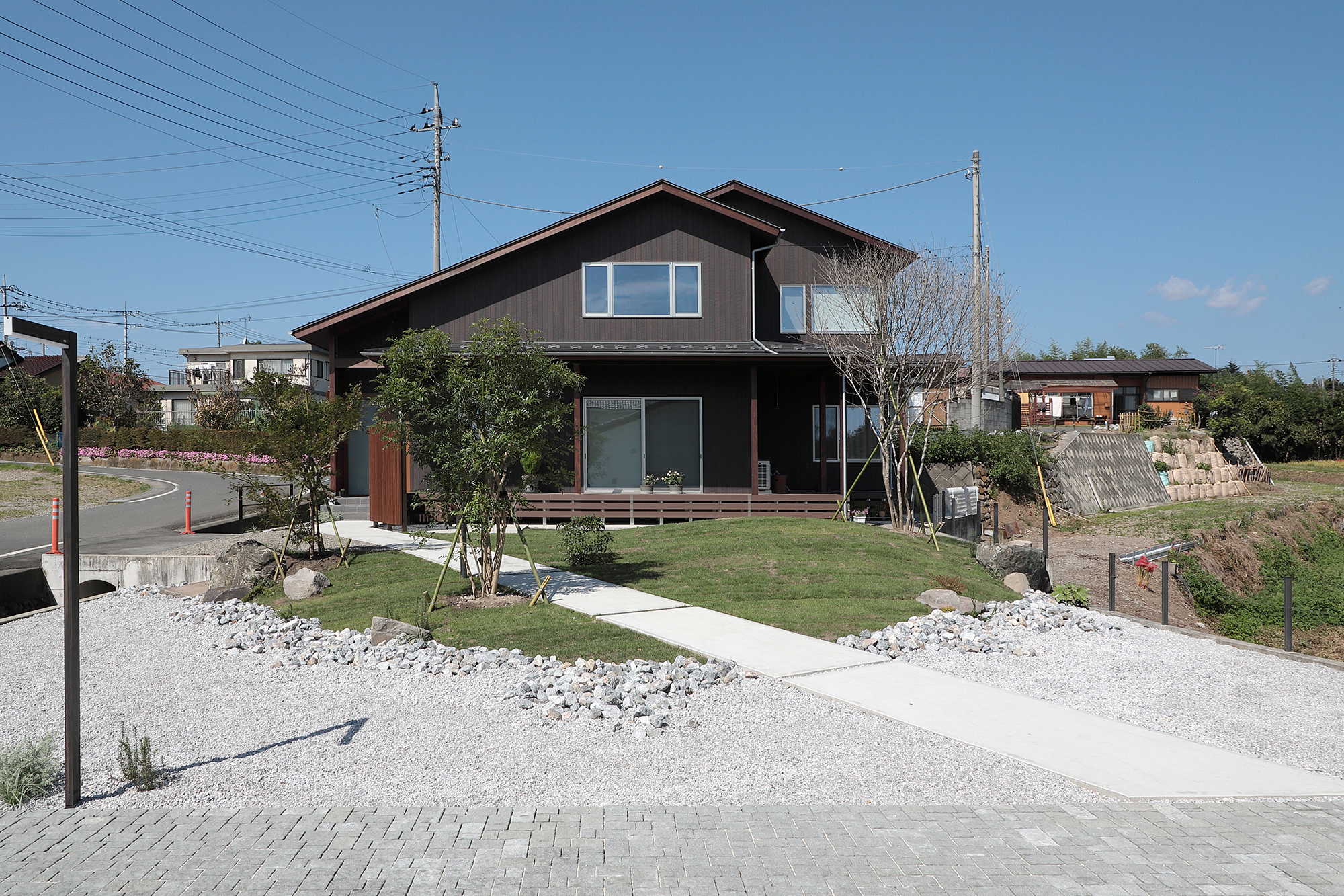 赤城山のふもと、群馬らしい広がりのある風景に建つ住宅の造園計画です。
