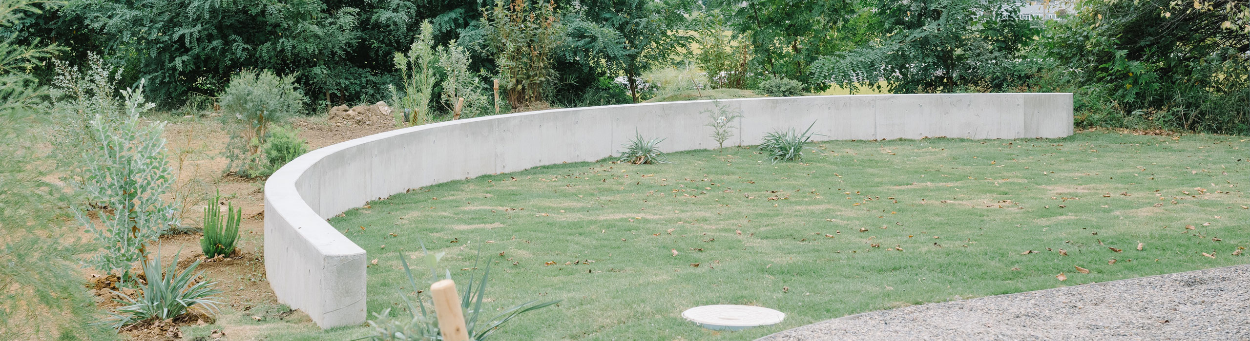 円弧に沿って高さ60cmの低いコンクリートの壁。