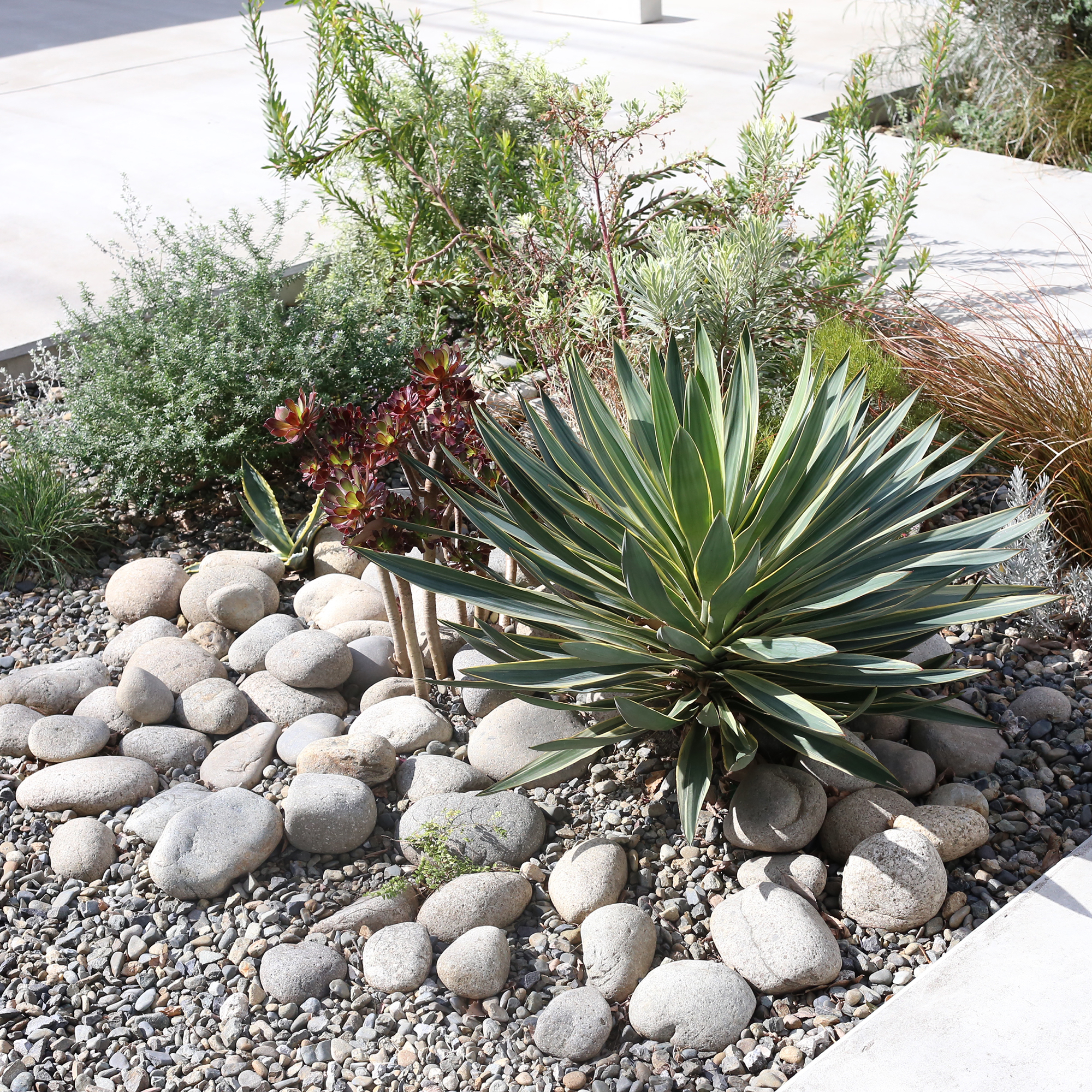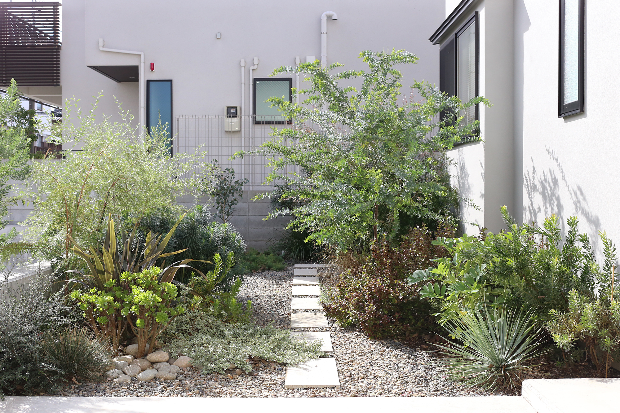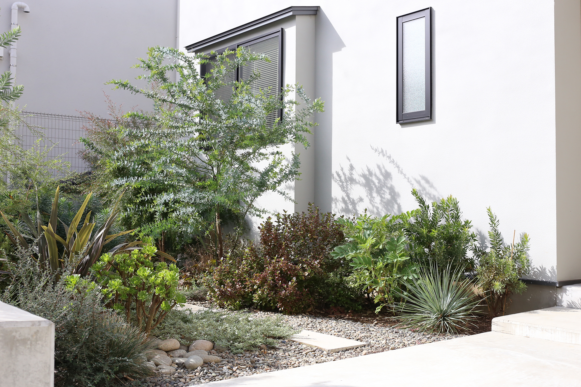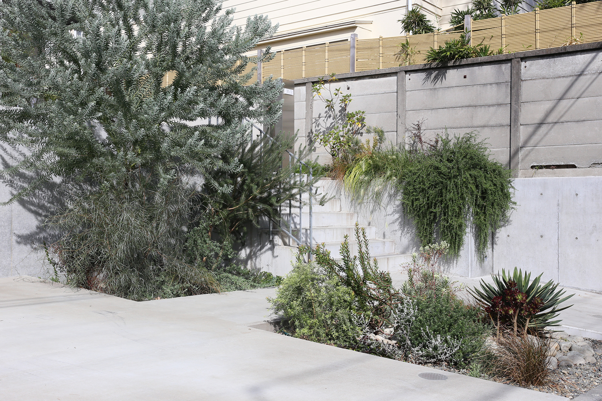 そして、新築のシャープな外構に自然と馴染む、オージープランツの乾いた質感。