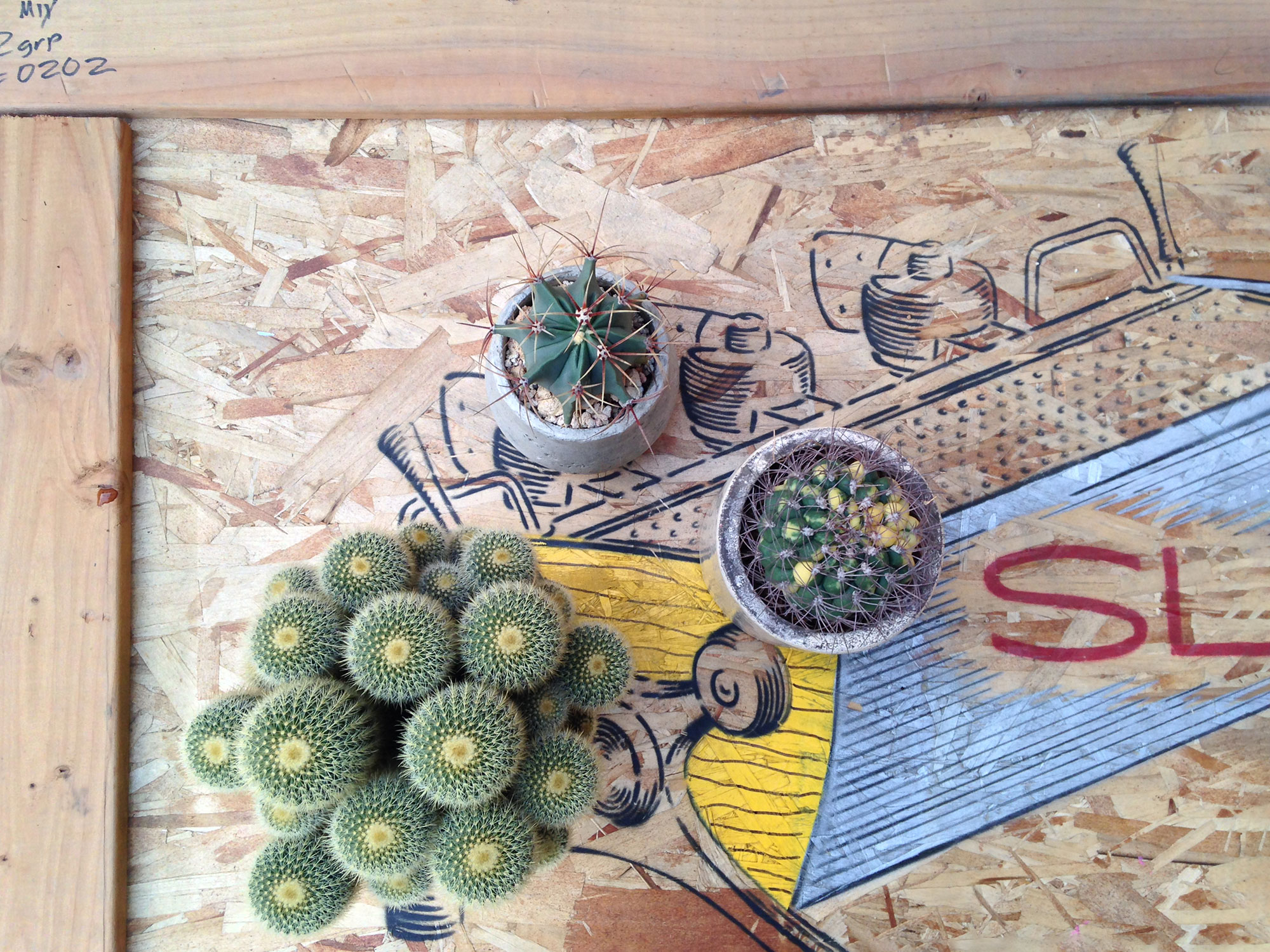 普段は暖かい土地ですが、仕入れの日は珍しい寒波に見舞われ、店内に避難させられた鉢植えをかき分けながら材料を選びました。