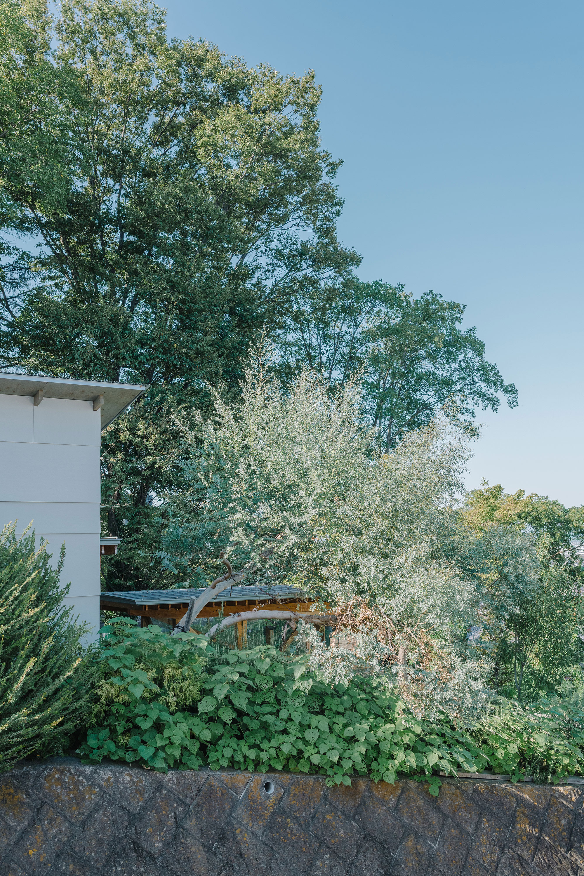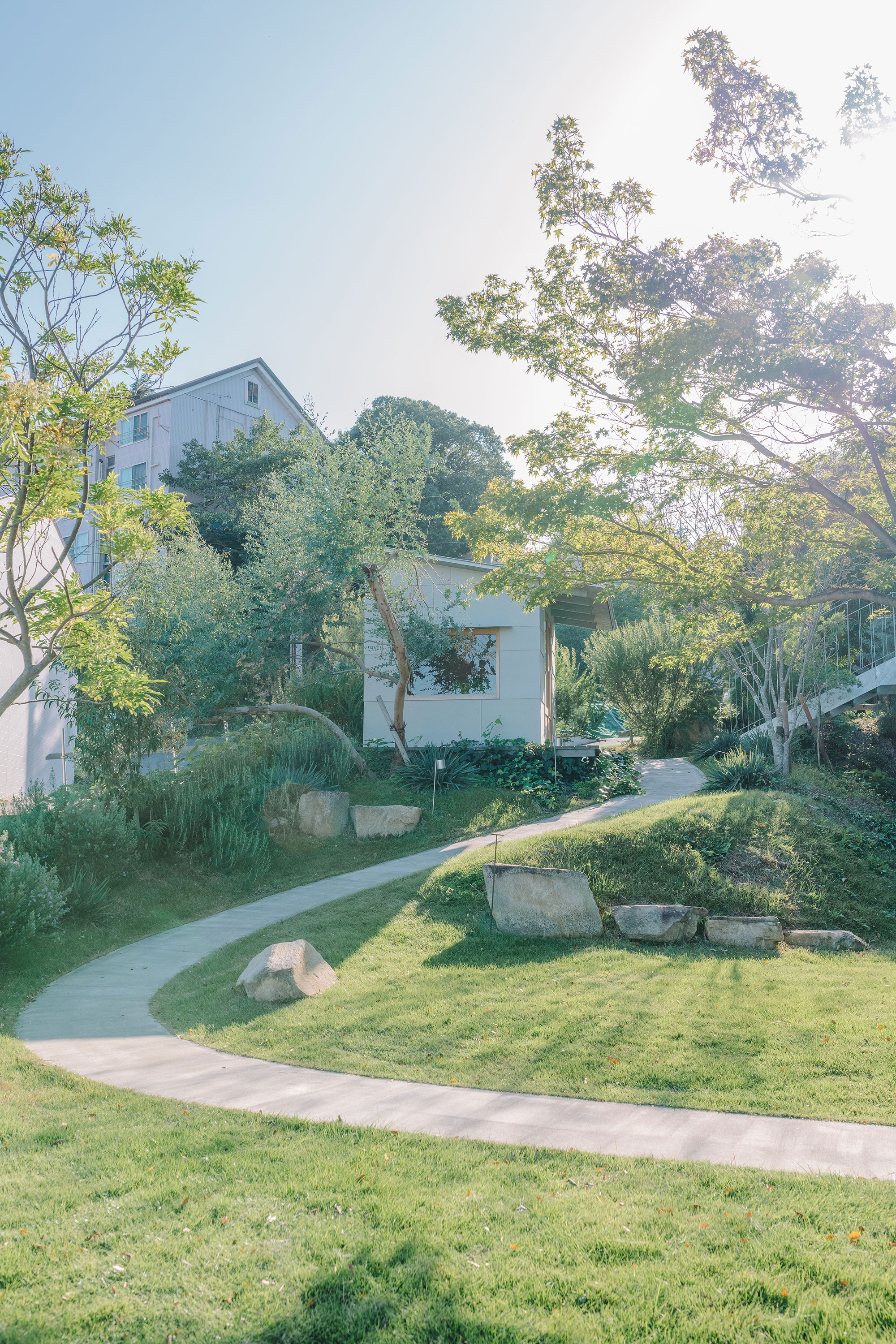 公園や公共施設、住宅っぽい仕上がりを避けて、和洋折衷さまざま種類の植物を植えながらこの場所だからこそ似合う、成立する植栽を目指しました。