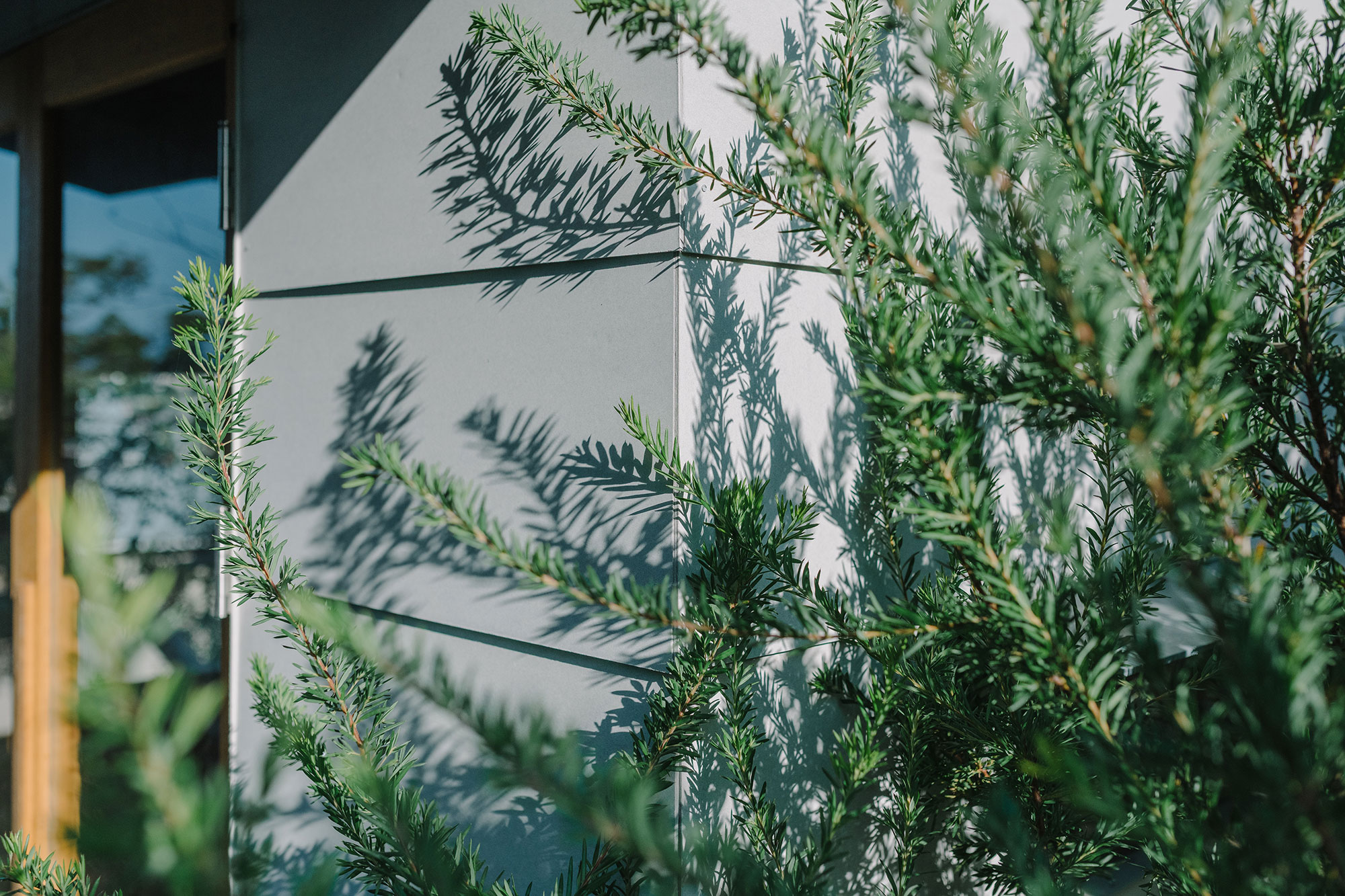 建築、外構はもちろん、植栽も法面を活かすように計画しました。